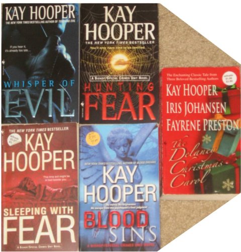 All five of the mass market paperback novels by New York Times Bestselling Author Kay Hooper were printed by Bantam Books. "Sleeping With Fear" (ISBN: 9780553586008) was printed in 2007. "Blood Sins" (ISBN: 9780553589269) was printed in 2008. "Whisper of Evil" (ISBN: 0553583468) was printed in 2002. "Hunting Fear" (ISBN: 0553585983) was printed in 2005. "The Delaney Christmas Carol" (ISBN: 9780553296549) was written in collaboration with Iris Johansen and Fayrene Preston and was printed in 2007. If purchased individually, a separate shipping charge would be assessed for each of the items, but the purchase of this combined listing results in the assessment of only one shipping charge for the group as though it was a single item, saving you, the buyer, as a result.From reader reviews: